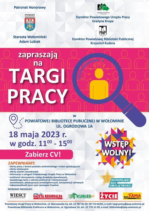 18 maja, Tragi Pracy w Wołominie, 11.00 – 15.00, Powiatowa Biblioteka Publiczna w Wołominie przy ul. Ogrodowej 1a.