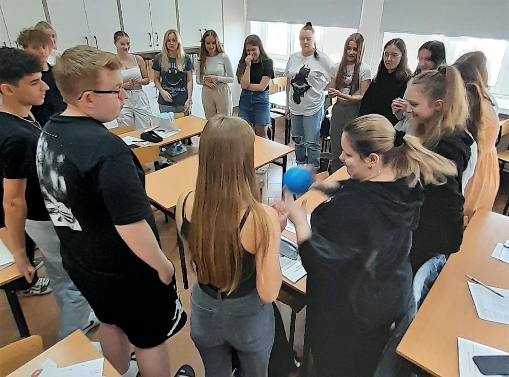 Aby zainteresować uczniów poradnictwem zawodowym, przeprowadzono również ćwiczenie integrujące grupę, które pozwoliło na sprawdzenie kompetencji społecznych.