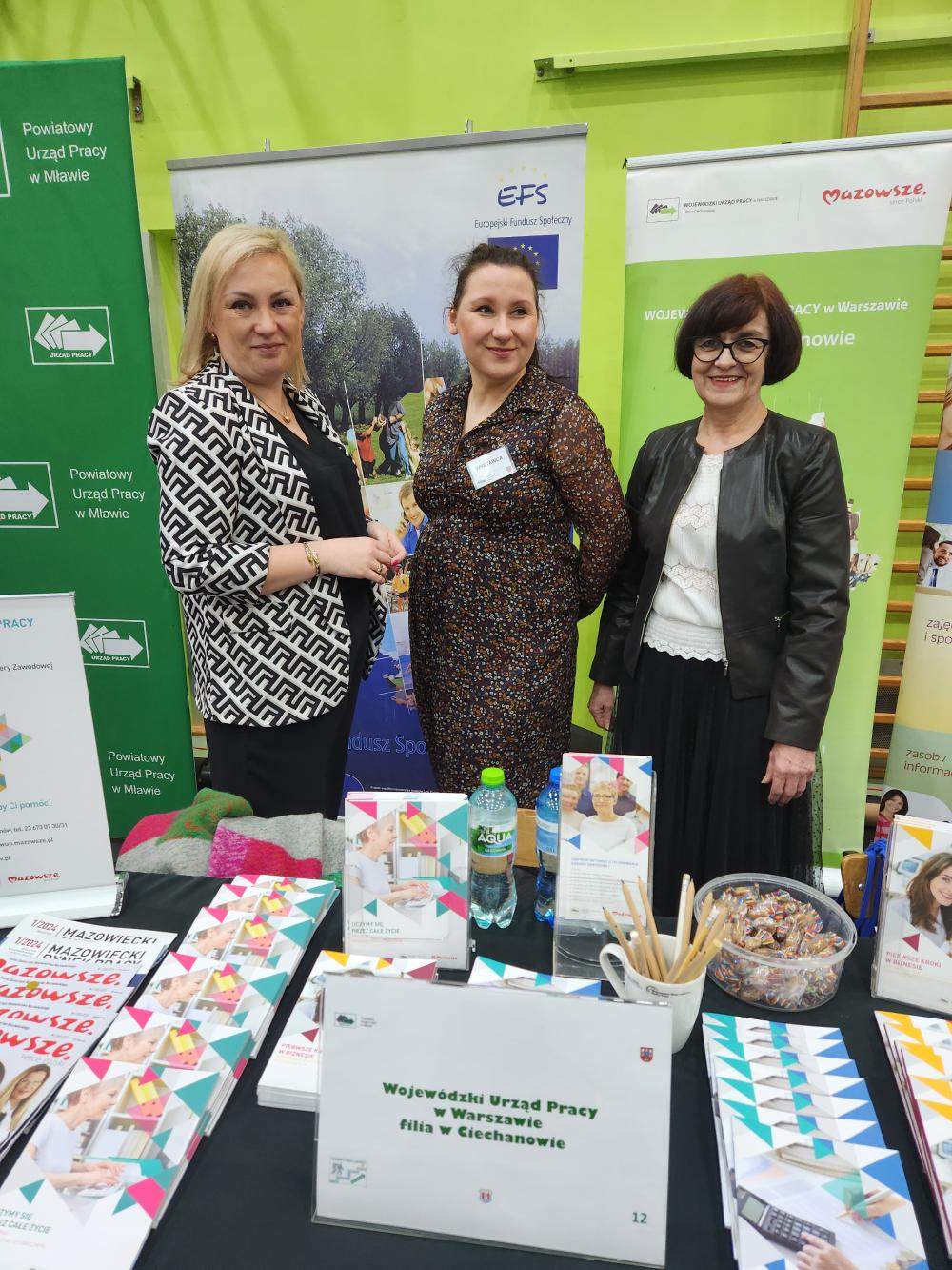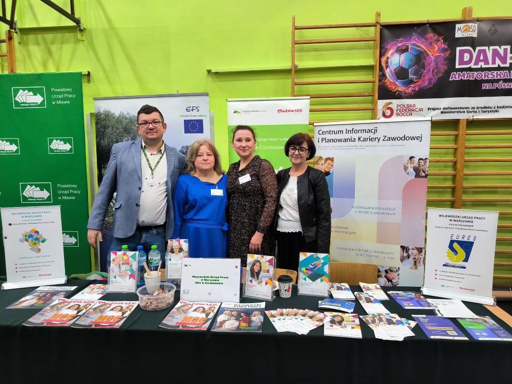Pracownicy ciechanowskiej filii WUP w Warszawie udzielali informacji o możliwościach wsparcia zawodowego, rynku pracy i usługach sieci EURES. Stoisko naszej filii cieszyło się dużym zainteresowaniem – młodzież miała okazję skorzystać z indywidualnych konsultacji z doradcami zawodowymi oraz uzyskać materiały pomocne w planowaniu kariery. Przy naszym stoisku można było także uzyskać porady dotyczące tworzenia dokumentów aplikacyjnych.