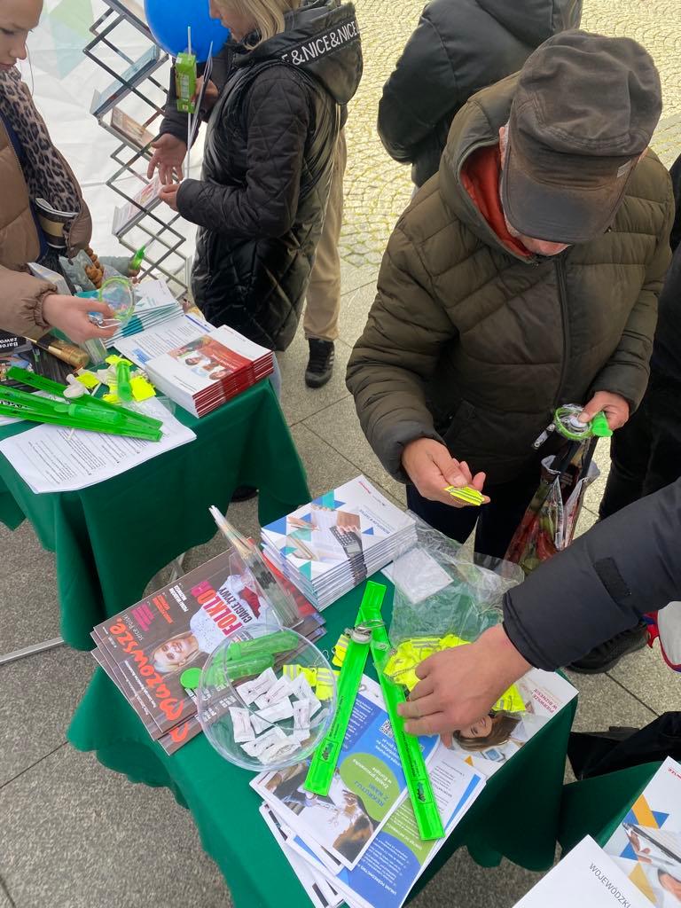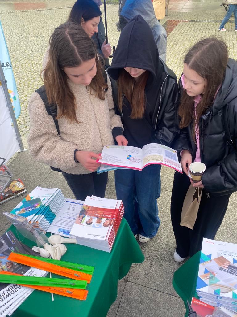 Na stoisku można było również zapoznać się z ofertą informacyjną WUP – dostępne były ulotki, broszury oraz gadżety promujące działalność urzędu. Pracownicy chętnie odpowiadali na pytania, a wielu uczestników opuszczało stoisko bogatszych nie tylko o nową wiedzę, ale i konkretne wskazówki, które mogą pomóc w poszukiwaniu pracy czy zmianie ścieżki zawodowej.