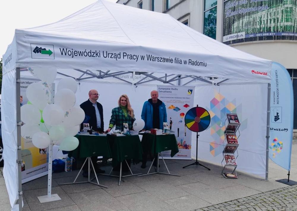 Wśród licznych stoisk edukacyjnych i medycznych znalazło się również stoisko Wojewódzkiego Urzędu Pracy w Warszawie, Filii w Radomiu, które cieszyło się dużym zainteresowaniem uczestników. Obecni na miejscu doradcy zawodowi z Centrum Informacji i Planowania Kariery Zawodowej służyli swoją wiedzą i doświadczeniem, udzielając porad oraz informacji na temat wsparcia dla osób bezrobotnych, usług aktywizacyjnych oraz zagranicznych ofert pracy dostępnych w ramach sieci EURES.