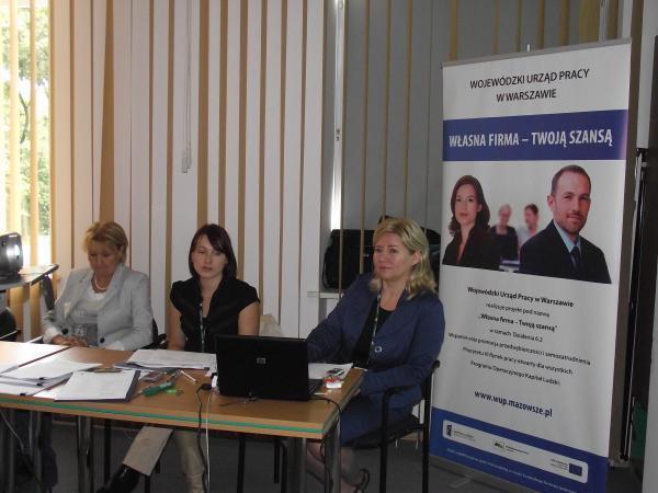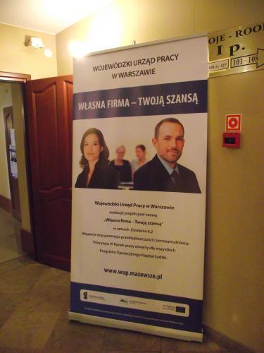 Projekt "Własna firma - Twoją szansą" współfinansowany ze środków Unii Europejskiej w ramach Europejskiego Funduszu Społecznego, realizowany przez Wojewódzki Urząd Pracy w Warszawie w ramach Działania 6.2 "Wsparcie oraz promocja przedsiębiorczości i samozatrudnienia", Priorytetu VI "Rynek pracy otwarty dla wszystkich" Programu Operacyjnego Kapitał Ludzki.